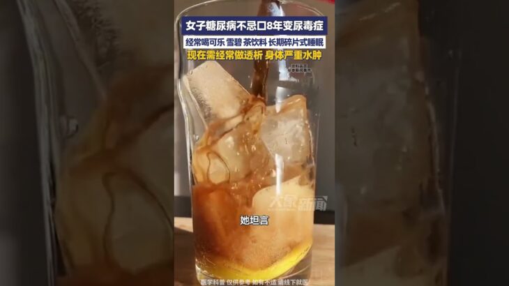 33岁女子糖尿病不忌口8年变尿毒症,经常喝可乐、雪碧、茶饮料,长期碎片式睡眠,现在需经常做透析,身体严重水肿#大象主播说 #河南dou知道 峰仔-A 33 year old woman with diabetes has become uremic for eight years. She often drinks cola, sprite and tea drinks. She has a lo […]